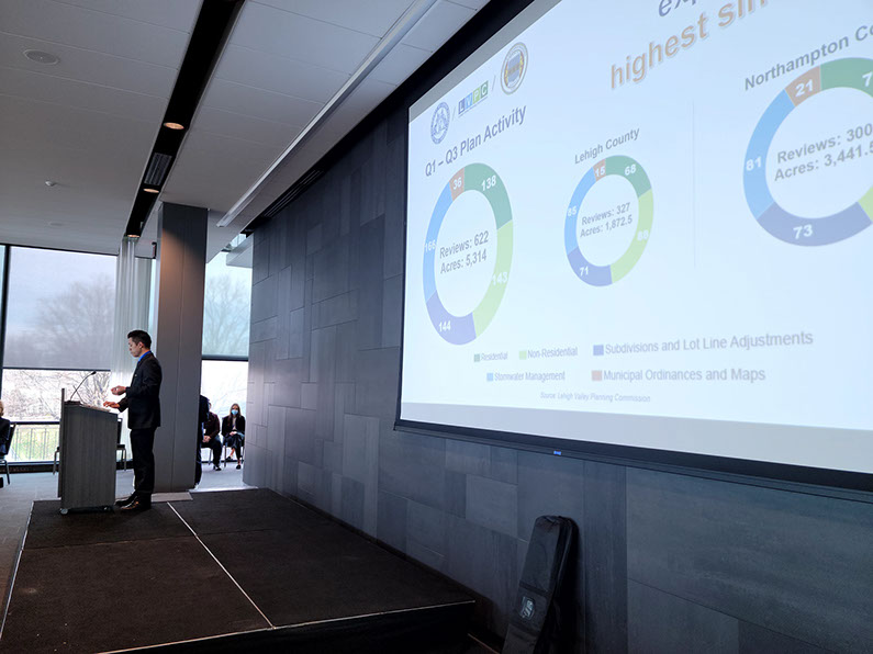 That usually strengthens the economy, but it also means we’ll have to work even harder to manage our growth, create attainable housing, evolve our infrastructure and ultimately reduce our emissions. That was the story told by a raft of new data released at our 9th Annual Lehigh Valley Outlook + Awards event, Nov. 15 at Lehigh University’s Iacocca Conference Center.