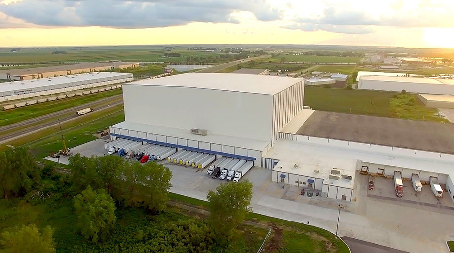 The 130-foot-tall Americold Automated Storage and Retrieval System under construction in Rochelle, Illinois (above) and completed (below). Photos courtesy of Griffco Design/Build, Inc.