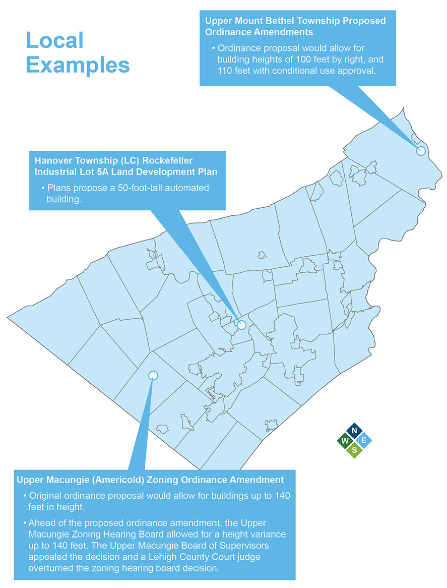 This emerging land use also has the potential for tremendous adverse impacts on the local and surrounding communities. Their high-tech automation means fewer jobs are created at the facility. Their height means drastic changes to landscapes in communities that have no other structures higher than three or four stories. These communities often do not have the emergency management service infrastructure necessary to serve structures of this scale, posing a threat to the public health, safety and welfare. While the efficiency of these facilities likely increases freight trips in and out of the site, the real impacts on traffic, and on the road and bridge infrastructure are not fully known because examples are not yet available to accurately assess trip generation. These factors will require proactive measures by municipal governments. Many of the impacts and recommendations detailed in this document could also apply to traditional warehouses and other industrial uses.
